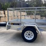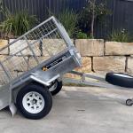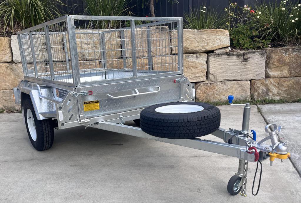 The tilt feature makes the job easy for unloading and has the option of a concrete mixer for those small concreting/rendering jobs.  The cage is removeable if required but adds that extra safety for transporting of items.