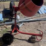 Our concrete mixers are near new and very reliable. They are 2.2CUFT and have solid wheels.  Weatherproof electric motor.