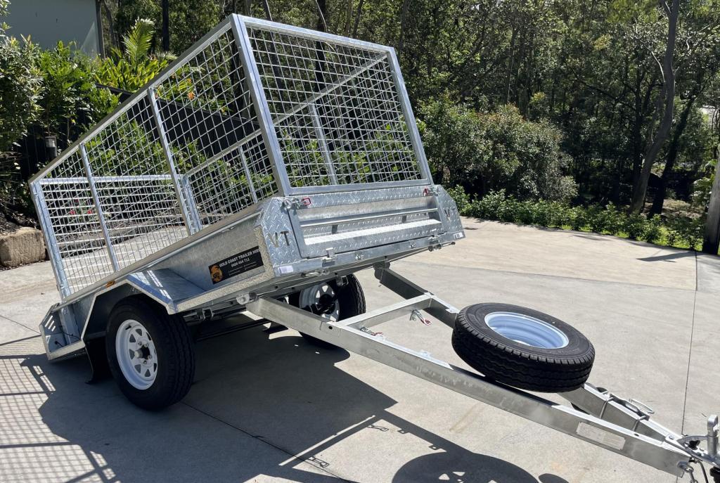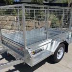The tilt feature makes the job easy for unloading and has the option of a concrete mixer for those small concreting/rendering jobs. The cage is removeable if required but adds that extra safety for transporting of items.