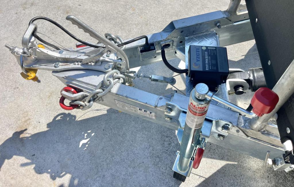 As this trailer is an ATM of 3500kg it has an electric braking system and heavy duty chains with D Shackles with a breakaway system for safety.